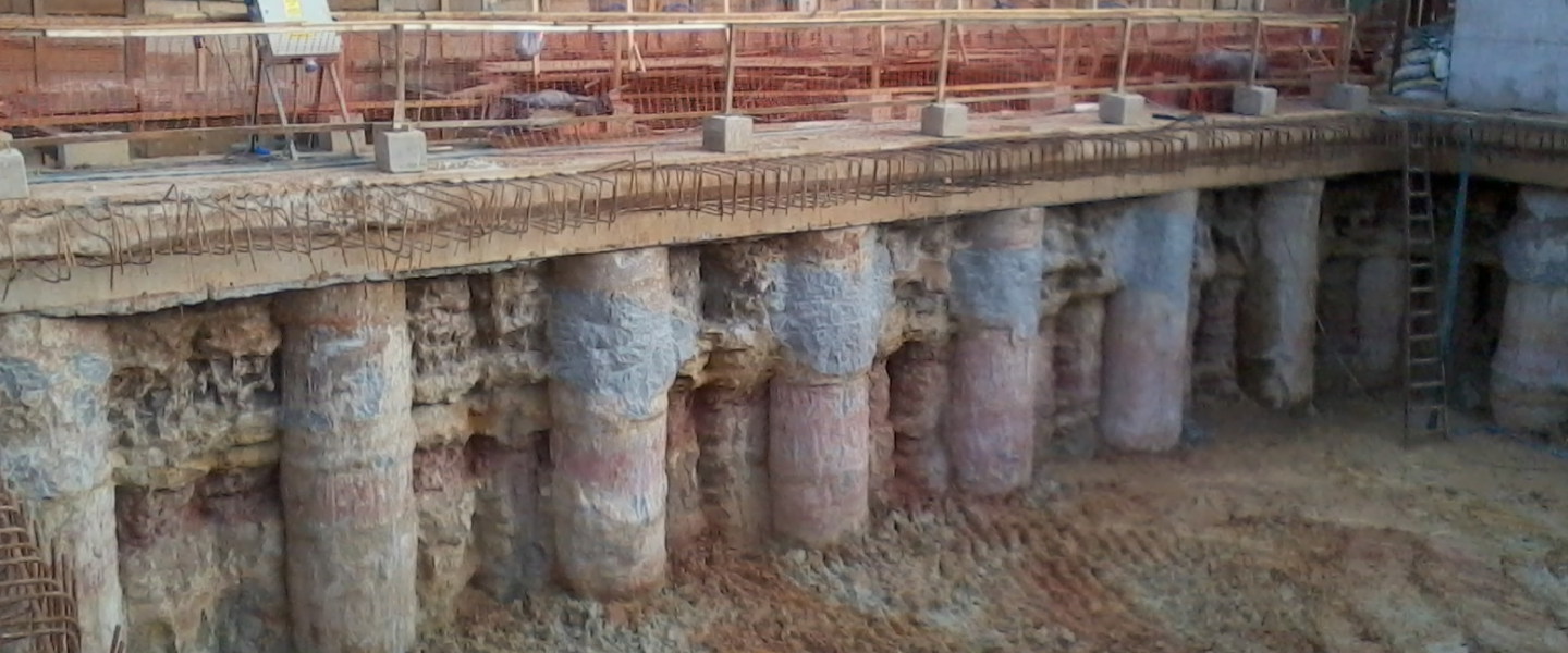 São colunas de solo cimento no contorno da abóboda da escavação ou em seu núcleo, executados previamente às escavações para manter a sustentação do maciço até a conclusão da aplicação do suporte.