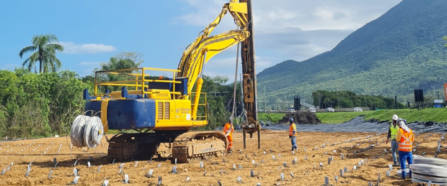 Esta solução proporciona o adensamento do solo pela redução da pressão neutra e diminuição de vazios, aumentando a resistência ao cisalhamento, criando uma condição de estabilidade para que o terreno possa receber cargas permanentes em prazos reduzidos.